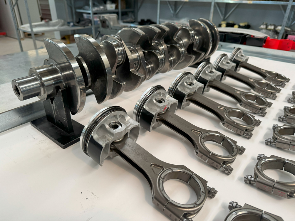 Il layout a 120° ha richiesto un approccio insolito anche per il design dell’albero motore. Idealmente, i perni di manovella avrebbero dovuto avere un offset di 60°. Tuttavia, a causa della lunghezza dell’albero, sarebbe stato difficile ottenere una rigidità sufficiente con un tale interasse. Per trovare un compromesso tra resistenza e ordine di accensione, si è scelto un offset di 50° sui perni. Il risultato è un ordine di accensione irregolare con spaziatura di 50° e 70°, invece del canonico 60°-60°. Questa configurazione ha permesso di ottenere un’ottima rigidezza dell’albero e al contempo una buona spaziatura tra gli scoppi. È stato svolto un lavoro intensivo per ottimizzare la geometria della manovella, come il design dei contrappesi e il diametro dei perni, per aumentarne la rigidezza.