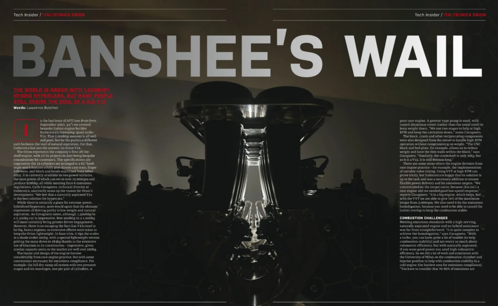 Yet, going against the tide, our team has decided to create one of the most interesting, ambitious and radical projects of recent years: Orion, a 6.8-liter V12 engine, light, compact, very high performance and built with quality and process standards closer to motorsport than to series production.